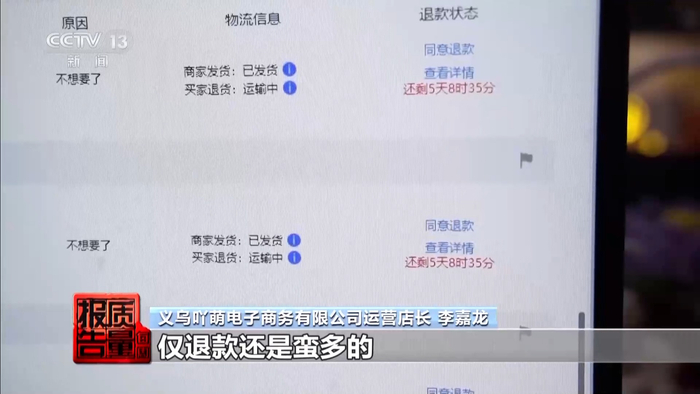 中国法学会消费者权益保护法研究会副秘书长 陈音江:这个仅退款的规则,确实对消费者是可以降低维权成本、提高维权效率,甚至可以倒逼商家去提升产品质量和服务质量。但是实际上,在执行的过程中,确实都会给双方带来一些困扰。