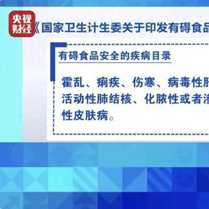 《国家卫生计生委关于印发有碍食品安全的疾病目录的通知》中明确规定,有碍食品安全的疾病目录包括:霍乱、痢疾、伤寒、病毒性肝炎、活动性肺结核、化脓性或者渗出性皮肤病。