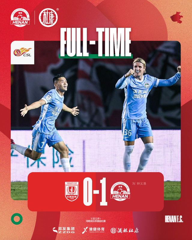 5月11日晚,在中超第12轮关键的保级“六分之战”中,河南队凭借钟义浩的制胜进球,最终以1:0击败“副班长”长春亚泰,拿到这场保级路上的关键战。而主场作战的长春亚泰遭遇尴尬四连败继续排名垫底,谢晖下课之后依然无法阻止连败厄运。