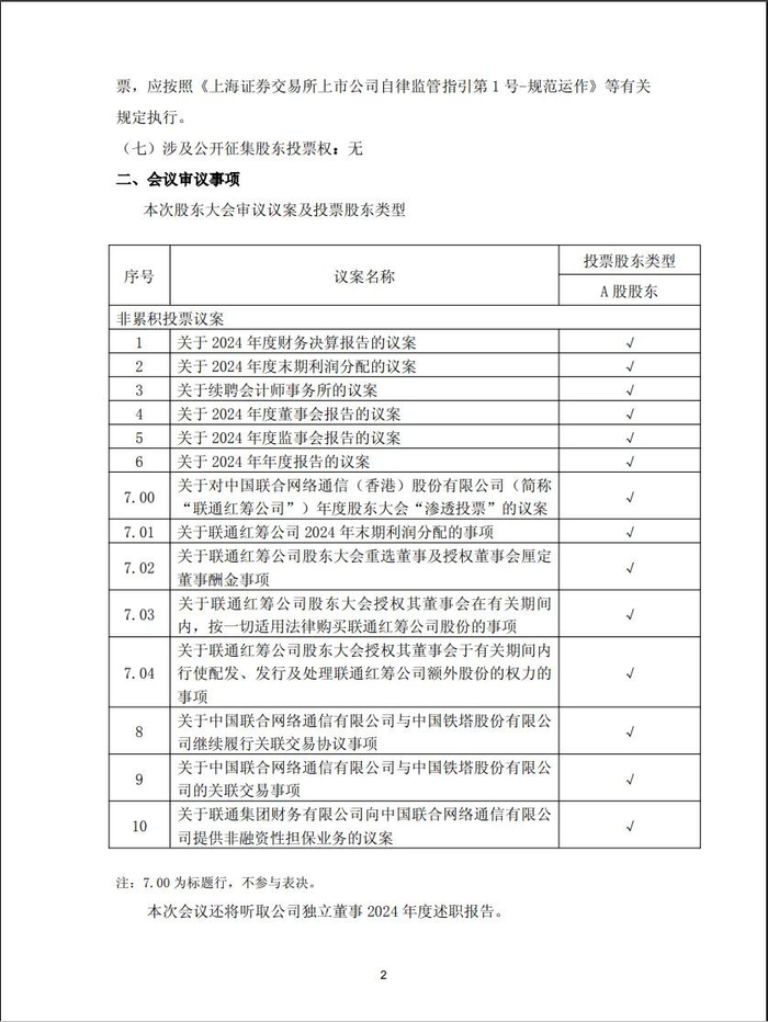 7、关于对中国联合网络通信年度股东大会“渗透投票”的议案