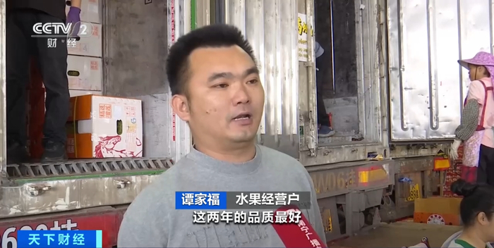 水果经营户 谭家福:大概一天可以销售35吨到40吨。