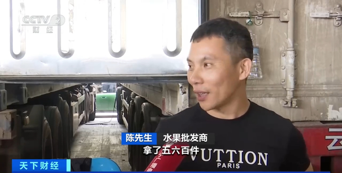水果批发商 陈先生:拿了五六百件,南宁这里价钱比广州便宜一点,运输也方便,什么费用都省一点。
