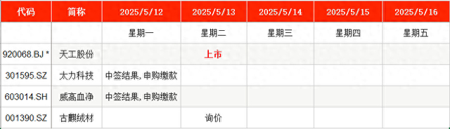 根据安排,江苏天工科技股份有限公司(下称“天工股份”,920068)将于本周二(5月13日)上市。值得一提的是,Wind数据显示,发行价为3.94元/股的天工股份,是今年以来发行价最低的新股。