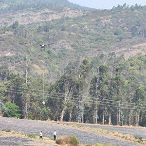五月,云南省玉溪市通海县九龙街道九龙社区三岔河区域,到处呈现出忙碌的景象。农民们有的在熟练地打孔破膜,有的小心翼翼地移栽小苗,还有的忙着浇水施肥。在这片热闹的田野上方,一台直径约成人臂展宽的无人机正“嗡嗡”作响,吊运着物资在天空中来回穿梭,成为一道独特的风景线。