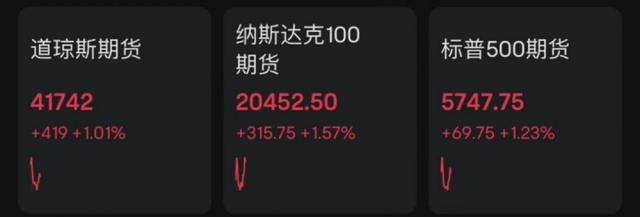 美股期货开盘上涨。截至发稿,标普500股指期货、纳指期货、道指期货涨幅均超过1%。
