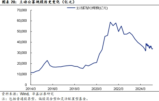 根据最新净值及份额估算,截至5月9日,主动公募股基资产净值在3.4万亿元,较2024Q4的3.66万亿元小幅下降。