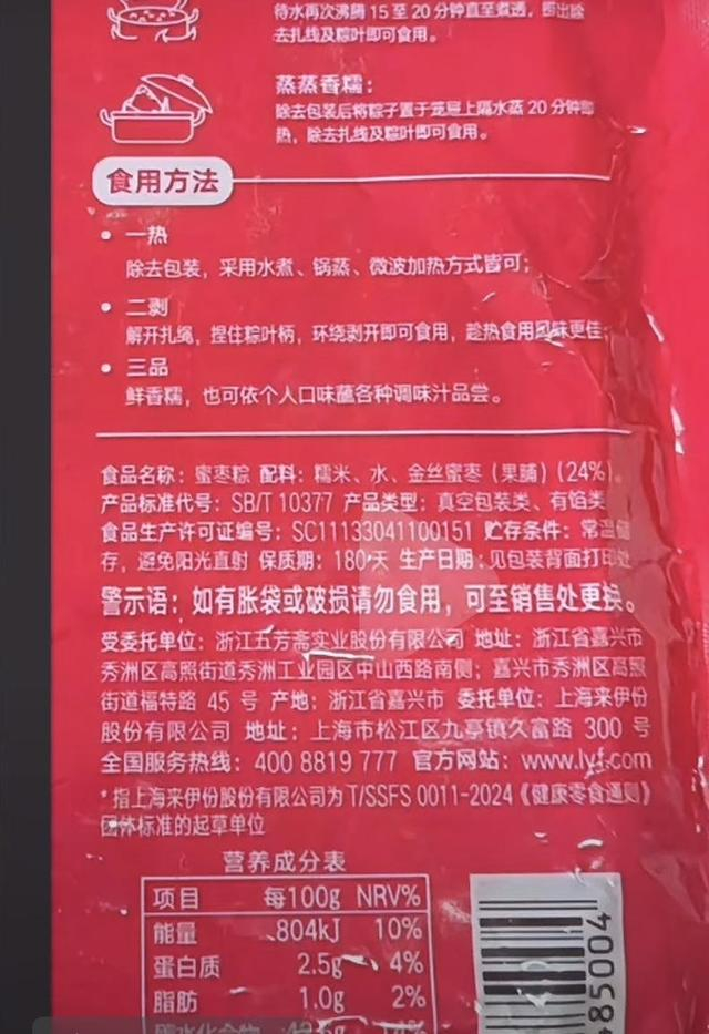 粽子中吃出“带血创可贴”?来伊份、五芳斋回应