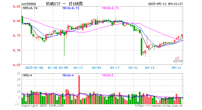 5月12日,机械ETF(159886)开盘涨0.13%,报0.745元。机械ETF(159886)重仓股方面,宁德时代开盘涨2.71%,汇川技术涨0.45%,三一重工涨0.30%,阳光电源涨5.15%,隆基绿能涨1.14%,潍柴动力涨0.33%,国电南瑞涨0.31%,中国中车涨0.69%,徐工机械涨0.45%,中国船舶涨0.33%。
