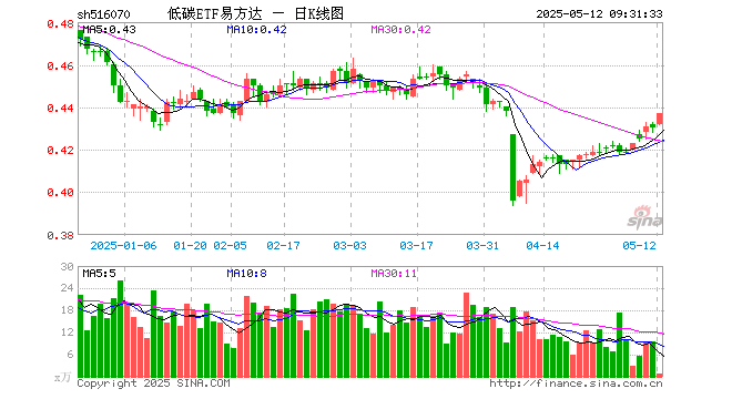 低碳ETF易方达(516070)业绩比较基准为中证内地低碳经济主题指数收益率,管理人为易方达基金管理有限公司,基金经理为张湛,成立(2021-04-15)以来回报为-13.86%,近一个月回报为5.77%。