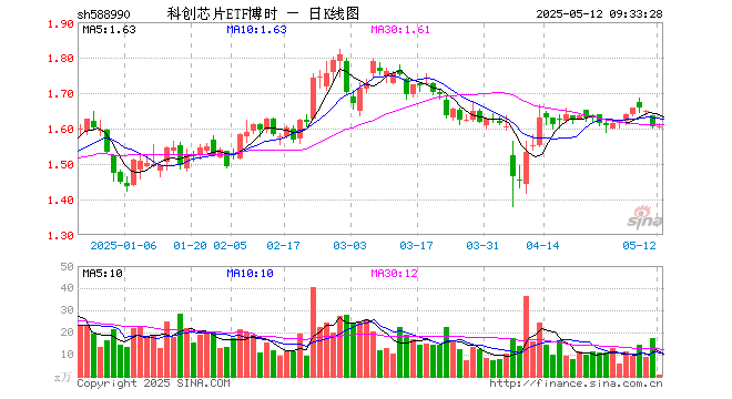 5月12日,科创芯片ETF博时(588990)开盘跌0.19%,报1.601元。科创芯片ETF博时(588990)重仓股方面,中芯国际开盘涨0.08%,海光信息跌0.19%,寒武纪跌0.45%,澜起科技涨0.74%,中微公司涨0.70%,芯原股份跌0.36%,沪硅产业涨0.34%,恒玄科技涨0.84%,晶晨股份涨2.11%,思特威涨0.45%。