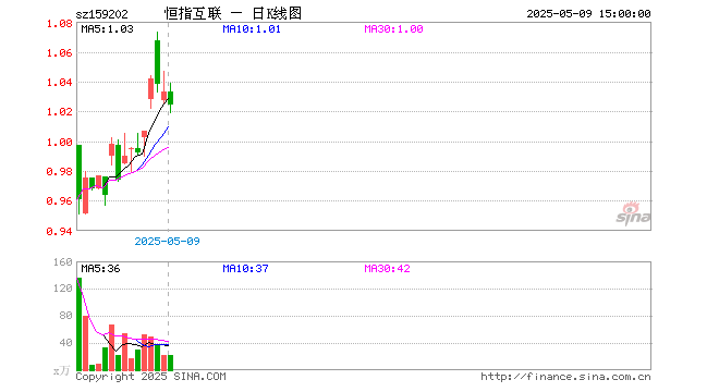 5月9日恒生互联网科技ETF(159202)份额增加300.00万份,最新份额1.09亿份,最新规模1.12亿元