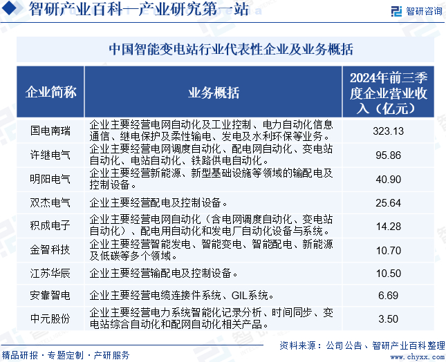 从我国智能变电站代表性企业布局情况来看,各企业在智能变电站产业的布局定位略有不同,安靠智电、金智科技、中元股份等企业专注于电网自动化设备及系统的开发,而双杰电气、许继电气、明阳电气、国电南瑞等等企业作为系统集成商进入智能变电站市场。