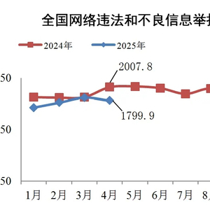 2025年4月全国受理网络违法和不良信息举报1799.9万件