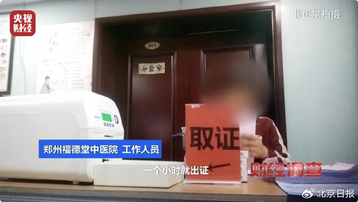 在郑州名为福德堂的中医院里,记者只做了X光胸透、采血、血压测量后,体检单上肝炎、痢疾、伤寒、肺结核、皮肤病等位置便被盖上了“未见异常”“未触及”等印章。这个过程中,医生没有对记者进行任何询问和检查。从记者挂号缴费到拿到健康证,共用时54分钟。