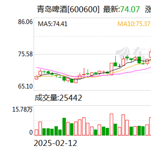 5月9日收盘,青岛啤酒报74.17元/股,微跌0.28%,总市值约1012亿元。