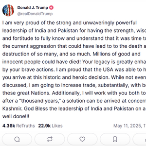 就在印巴艰难维持脆弱的停火协议之际,美国总统特朗普周日在Truth Social上发文称,他将与印度和巴基斯坦共同努力,寻求就克什米尔问题达成解决方案。