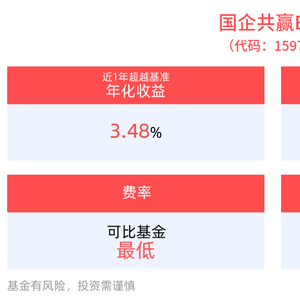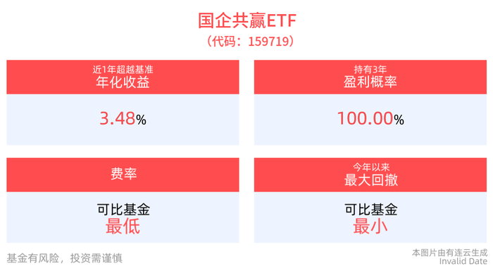 费率方面,国企共赢ETF管理费率为0.25%,托管费率为0.05%,费率在可比基金中最低。