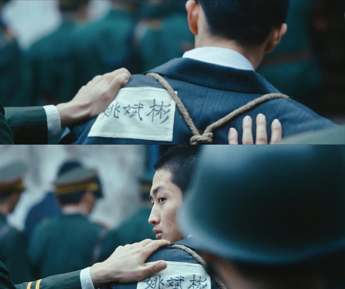 澎湃新闻:我对剧中的姚斌彬也印象很深,有一幕是他要被枪毙之前对杜湘东的回眸,很抓人。小说里杜湘东在姚斌彬被行刑前帮忙扎紧麻绳这个细节也被保留了下来。