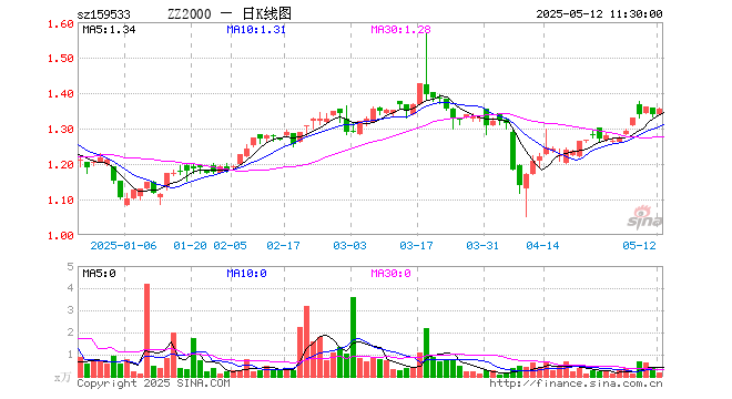 中证2000ETF基金(159533)涨1.27%,半日成交额24.83万元