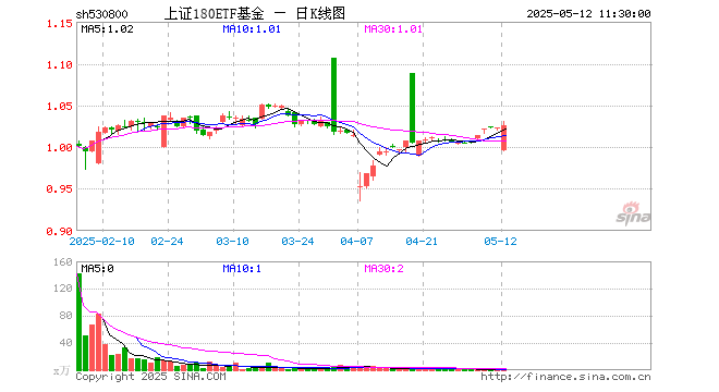 上证180ETF基金(530800)涨0.29%,半日成交额56.81万元