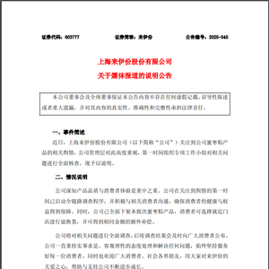 据财经网,来伊份5月12日早间公告,公司关注到公司蜜枣粽产品的相关舆情,管理层第一时间组织专项工作小组对相关问题进行全面核查;已启动全链路调查程序,并积极与相关消费者沟通。