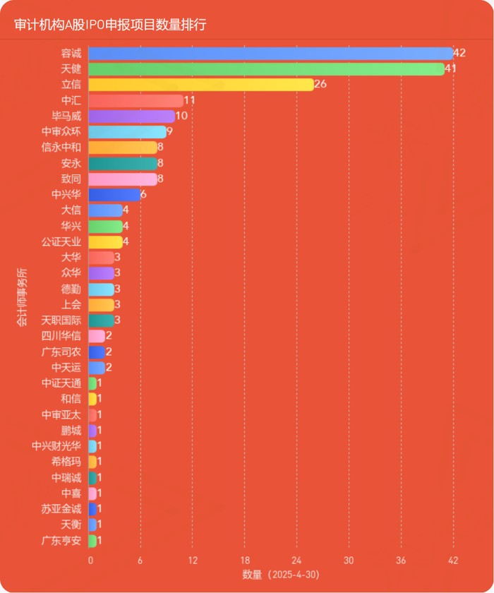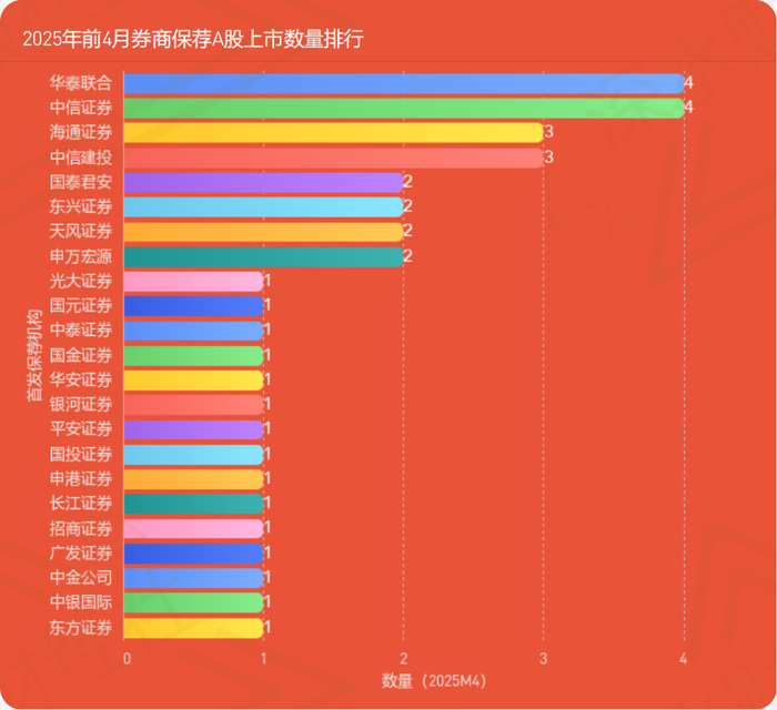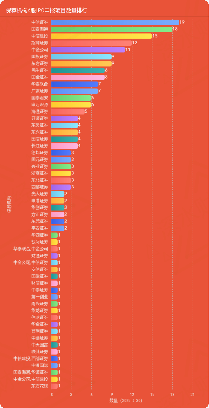 独家发布|2025年前4月中介机构A股IPO上市、申报、辅导数量排行榜
