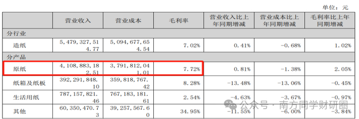 公司主营造纸业,收入来源包括原纸、生活用纸、纸箱,收入占比分别是75%、14.4%、7.2%。