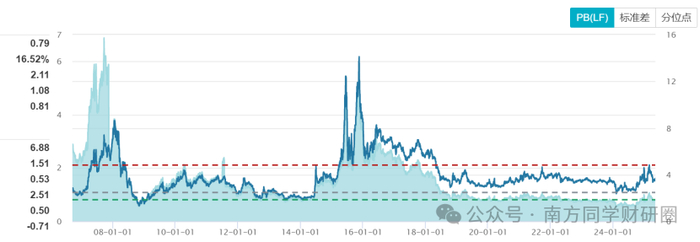 作为典型的周期性行业,在行业高市盈率、低市净率时买入,待行业复苏、市盈率下降时卖出,是一种常见的投资策略。当前公司市净率处于上市以来16.5%的历史分位水平,相对低估。