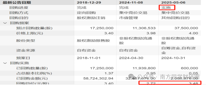 为了避免大量转股带来的对正股价格影响,公司宣告计划使用0.8亿-1.5亿的金额回购用于可转债,以不超过4.00元/股的回购价格上限进行回购。这次的回购力度比18年、24年更大,目前才完成208万的股份回购。