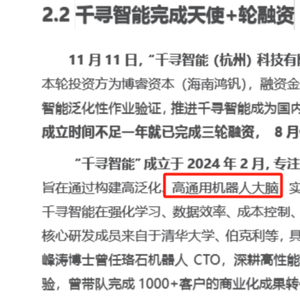近期,杭州的千寻智能完成5.28亿元人民币Pre-A轮融资的消息激起层层涟漪,也开始让笔者搜索其背后相关的上市公司参与者。千寻智能虽仅成立一年,但至今已成功完成几轮融资,被资本高度认可,最近一期是5月华为哈勃的入股。