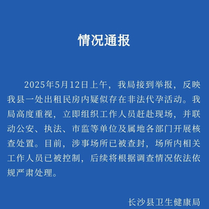 湖南长沙县卫健局通报一出租房疑存非法代孕活动:涉事场所已被查封