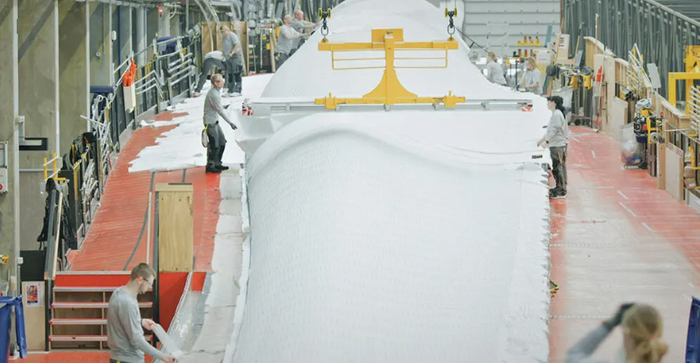“我们对粗纱进行了细致的质量控制,将它们制成115 米长的海上风电叶片所需的纤维织物,并使用它们生产新叶片。看到这些纤维织物如此完美,真是太令人振奋了。”西门子歌美飒高级可持续发展专家David Vindel Romero说。