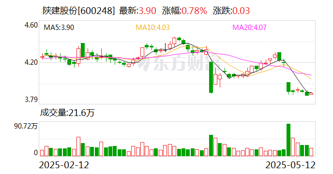 陕建股份(SH 600248,收盘价:3.9元)5月12日晚间发布公告称,2025年4月,陕西建工集团股份有限公司下属子公司中标多项重大施工项目。其中,中标金额5亿元以上的施工项目合计中标金额为78.8亿元。