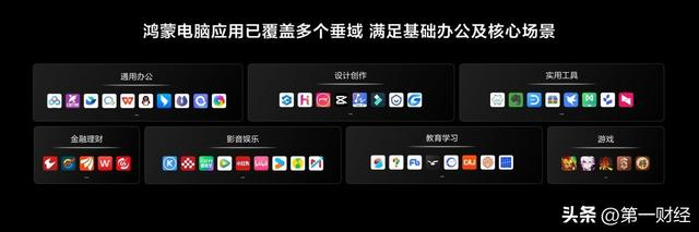 更为重要的是,鸿蒙电脑上的兼容性架构正在打破生态壁垒,将桌面生态与移动生态深度融合。数据显示,鸿蒙移动端应用和元服务上架数量已超两万。而截至2025年5月,在电脑端,已有150多款专属头部应用已经启动开发,2000多款电脑端/移动端融合生态应用加速适配,其中超300款融合生态应用已完成适配,覆盖通用办公、影音娱乐、实用工具、教育学习、金融理财、设计创作等多个用户高频使用场景。目前,小红书、B站、飞书等移动生态应用已在鸿蒙电脑上完成适配,移动生态能快速在桌面端开发和部署。电脑操作系统生态构建相对于移动端更加复杂且艰难,但是鸿蒙电脑此次的出现,以及华为在移动端的生态沉淀,让国产电脑操作系统的“应用荒漠”有了变成绿洲的可能。