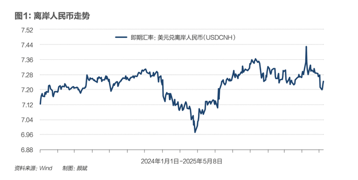 此轮人民币兑美元汇率急升始于4月30日。自此之后,离岸人民币兑美元汇率一路从7.27升破7.20,升值幅度达1%。拉长时间看,自触及7.4低点后,离岸人民币兑美元汇率已不断走强,4月8日至今上涨近2.7%。