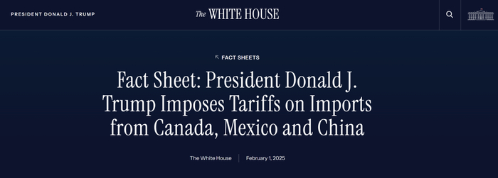 2 月 1 日,特朗普借口「中国没能管好出口的芬太尼原料,导致美国毒品泛滥」,决定对从加拿大、墨西哥和中国进口的商品加征 10% 关税。