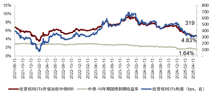 图表11:经营权REITs中债IRR与利差走势