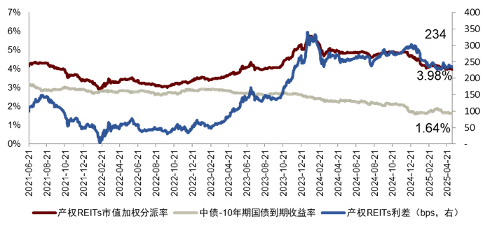 图表10:产权REITs分派率与利差走势