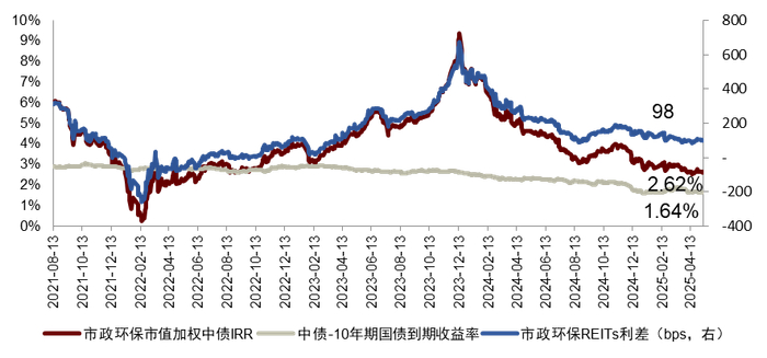 图表13:市政环保REITs中债IRR与利差走势