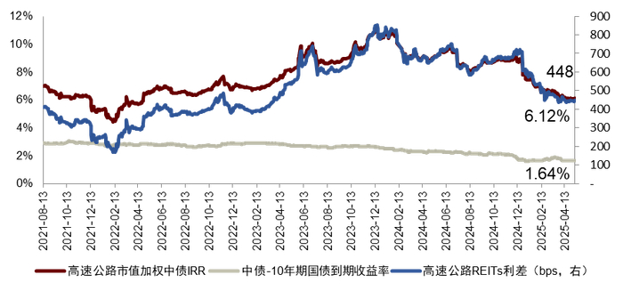 图表15:高速公路REITs中债IRR与利差走势