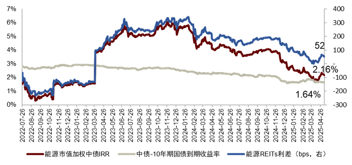 图表17:能源REITs中债IRR与利差走势
