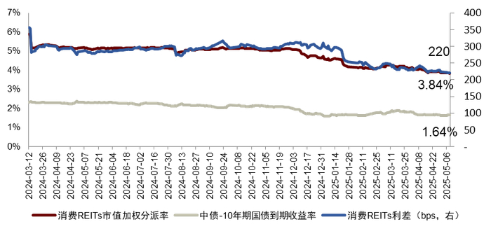 图表18:消费REITs分派率与利差走势
