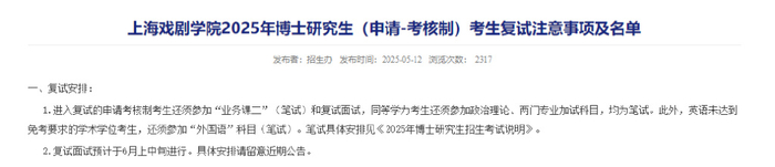 据现代快报消息,5月12日,上海戏剧学院官方发布了2025年博士研究生的复试名单,有网友在名单中发现了黄晓明和金世佳 ,这也意味着二人已经通过了初试。