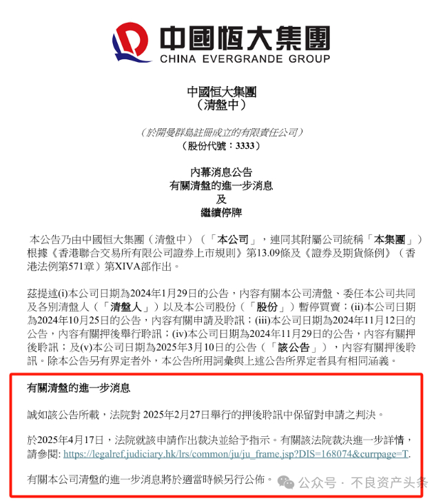 2025年1月,中国恒大附属公司“CEG Holdings”同样被香港高等法院下令清盘。