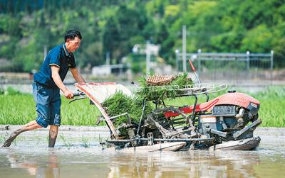 立夏过后,多地农民抢抓农时,陆续开展水稻插秧工作。图为农机手操作插秧机在贵州省黔西南布依族苗族自治州安龙县春潭街道阿兴村进行插秧作业。据了解,当地近年来通过建设高标准农田,积极推广多种农用机械,不断夯实粮食生产基础。刘朝富摄(人民视觉)