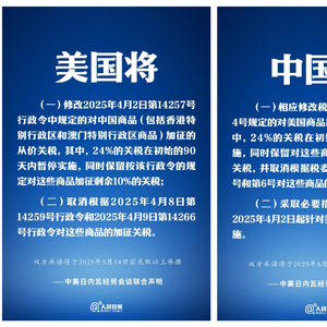 4月2日起加征的24%“对等关税”暂缓90天,90天之后加不加后面开会接着谈;
