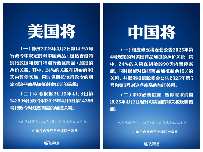 两边的关税税率直接回到了基准10%,也就是这90天内双方各收10%;
