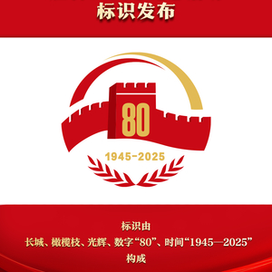 标识由长城、橄榄枝、光辉、数字“80”、时间“1945—2025”构成。长城象征全民族众志成城奋勇抗战,寓意以爱国主义为核心的伟大民族精神是抗战胜利的决定因素。橄榄枝象征中国人民经过艰苦卓绝的抗战,用胜利赢得和平,寓意中国人民同各国人民团结起来,珍爱和平、维护和平。光辉围合而成的胜利之门,象征中国人民抗日战争和世界反法西斯战争的胜利是正义战胜邪恶、光明战胜黑暗、进步战胜反动的伟大胜利,寓意在中国共产党的坚强领导下,中华民族实现伟大复兴的前景无比光明。