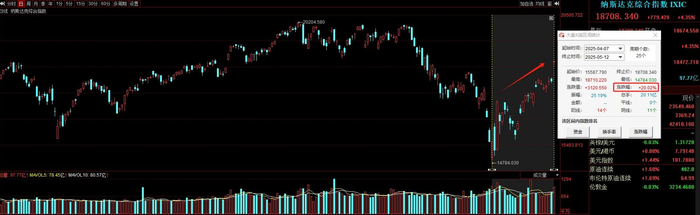 美东时间周一(5月12日),周末中美高层经贸谈判取得实质性进展,强烈提振市场风险偏好,美股强势大涨,三大股指均创一个月来最大涨幅,道指涨逾千点,纳指自低点反弹20%,进入技术性牛市。值得一提的是,美股自特朗普“大喊买入”之后的涨幅,创两届任内最大。