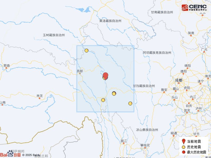 历史地震:根据中国地震台网速报目录,震中周边200公里内近5年来发生3级以上地震共10次,最大地震是2025年4月26日在四川甘孜州白玉县发生的4.9级地震(距离本次震中3公里),历史地震分布如图。
